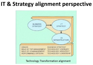This perspective views the business strategy as the driver. However, involves the articulation an IT strategy support the chosen business strategy and the corresponding specification of the required I/S infrastructure and process. The top management should provide the technology vision to articulate the logic and choices pertaining to IT strategy that would best support the chosen business strategy while the role of the I/S manager should be that of the technology architect-who efficiently and effectively design and implements the required I/S infrastructure that is consistent with the external of the IT strategy.